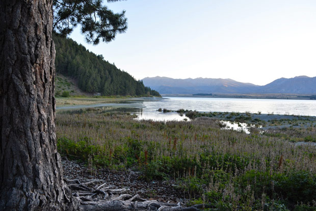 My favourite time of day at Lake Tekapo was as the sun came up. The light was soft as it spread across the mountains and the calm water. Past the forest of trees, the blue water gently lapped at the grey pebbles lining the shore. There were only faint sounds of people waking up in the adjacent campground – sounds of tents flapping open and the hum of voices. There was no one by the lake in the early morning and I had the shore all to myself as I watched the sun brightening the sky.